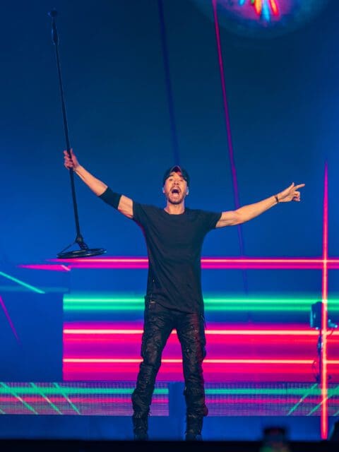 The show began with Ricky Martin, who wore baggy black pants and a black shirt that would fall off later on to expose his tattooed arms. As soon as the Puerto Rican singer appeared on stage, the crowd jumped out of their seats at the sound of songs like Pégate and Mariawhich signalled that the party had just started. Joined by a nine-person band and a group of seven Latin dancers, Ricky Martin unleashed a thrilling performance that proved once again his versatility as a singer and dancer. The Latin singer’s set list was full of hyped songs, but it didn’t stop the singer from adding a few ballads and acoustic songs, like Tu Recuerdo and Vuelve.