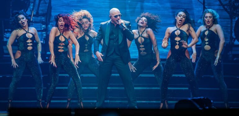 After Ricky Martin’s keen performance, Mr. Worldwide, Cuban rapper Pitbull, took over the stage with a set with assorted themes on screen that kept changing with every song. Pitbull came on stage wearing his signature attire—a black suit and shades. Nonetheless, the rapper wasn’t the only one wearing that outfit that night since at least a third of the people in Scotiabank Arena were dressed up like the rapper, wearing bald wigs and shades. Pitbull and his band of six and the same number of dancers, opened the set with the song Don’t Stop the Party with a South Beach theme on stage. He then proceeded with the song Hey Baby (Drop It to the Floor), then followed by one of his biggest hits, Hotel Room Service (showcasing a hotel theme on stage). Armando Christian Perez, aka Pitbull, is not only a master of partying but also a master of entertainment since he kept the audience hyped for an hour, jumping and dancing to the rhythm of his party anthems.