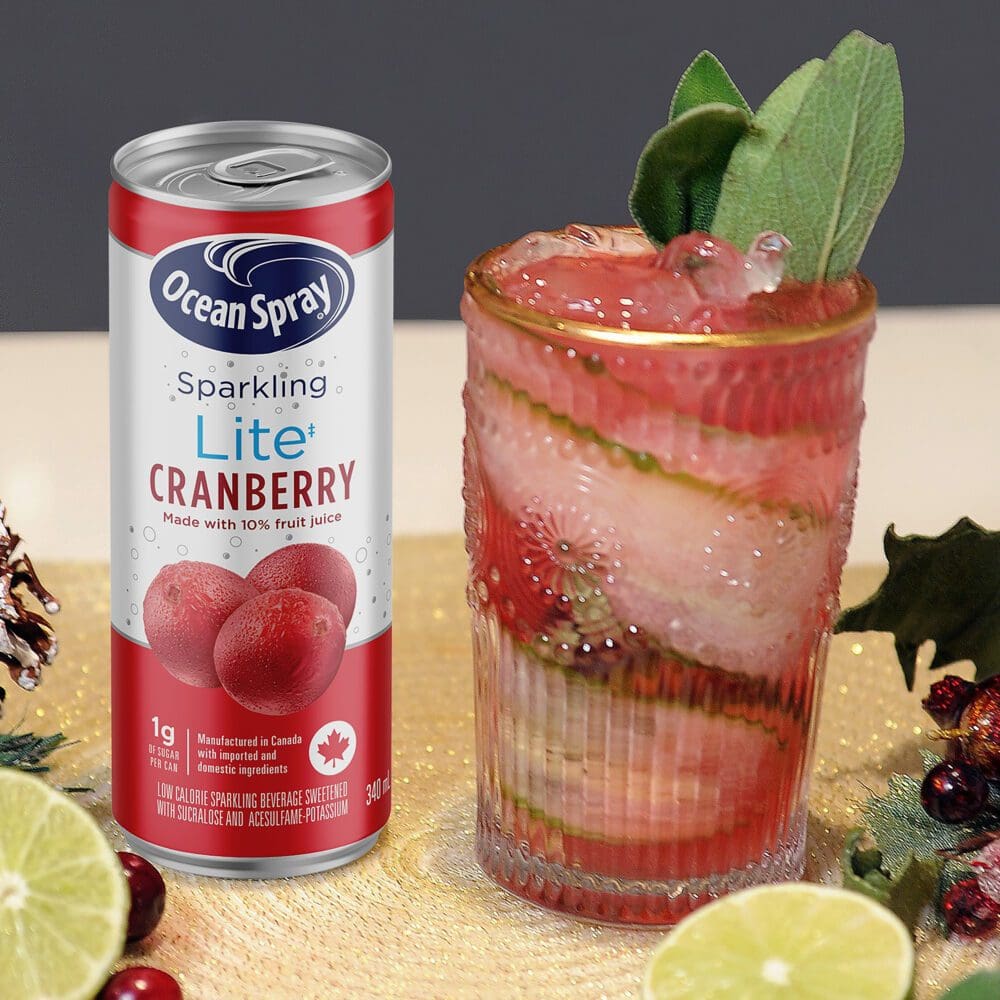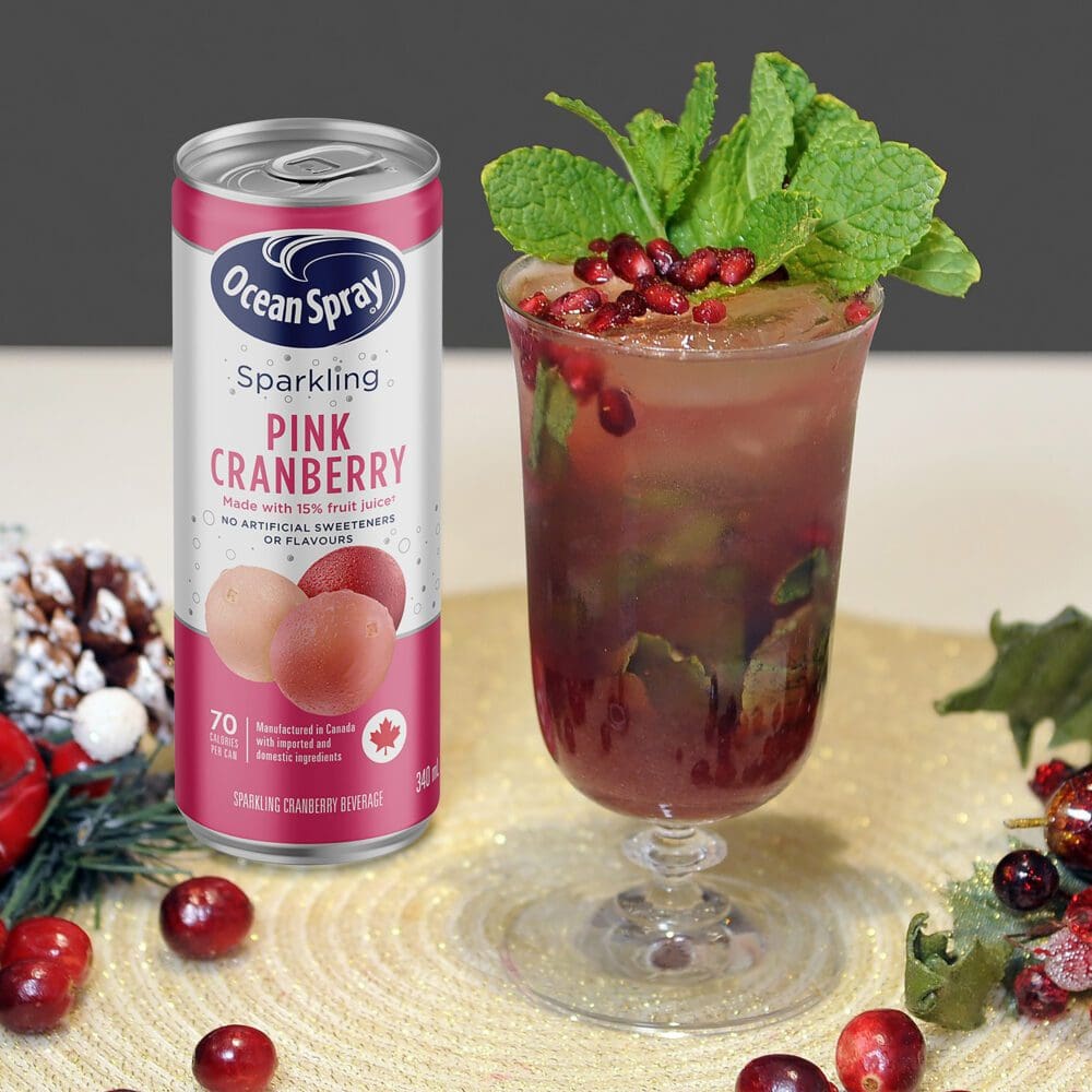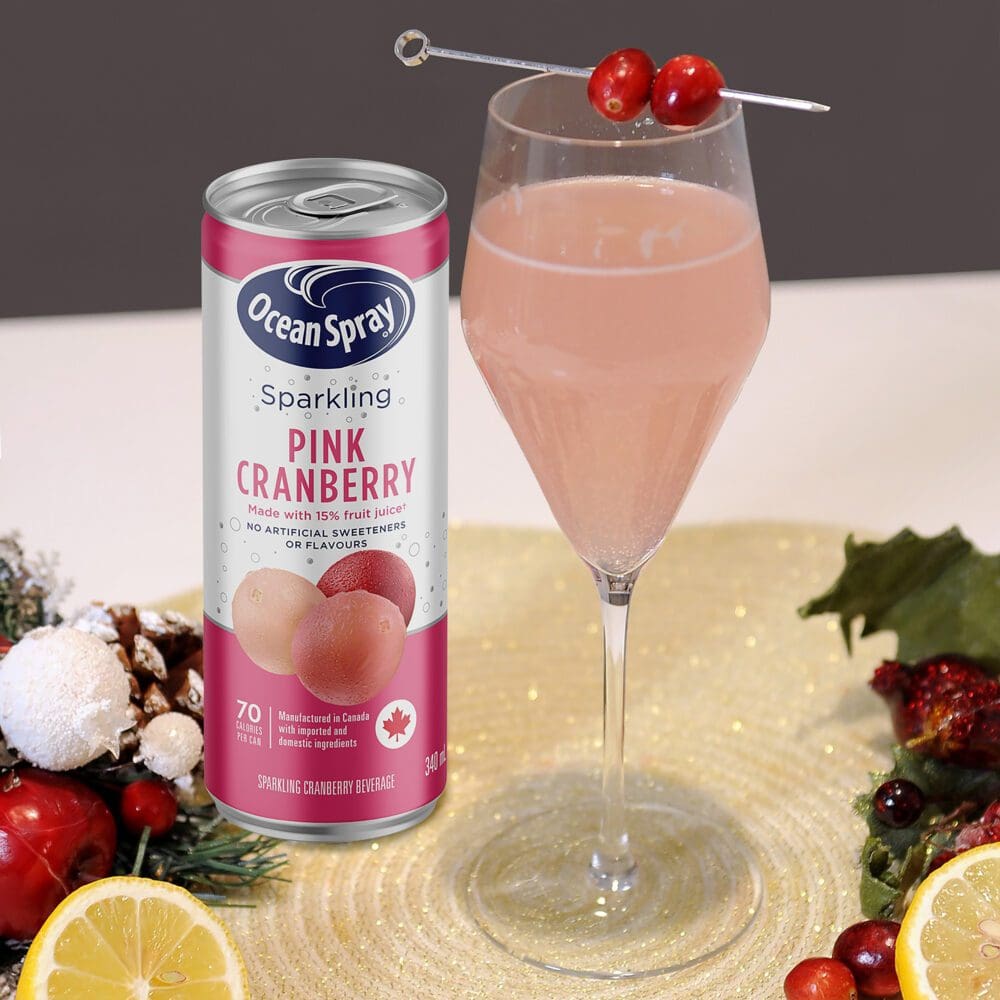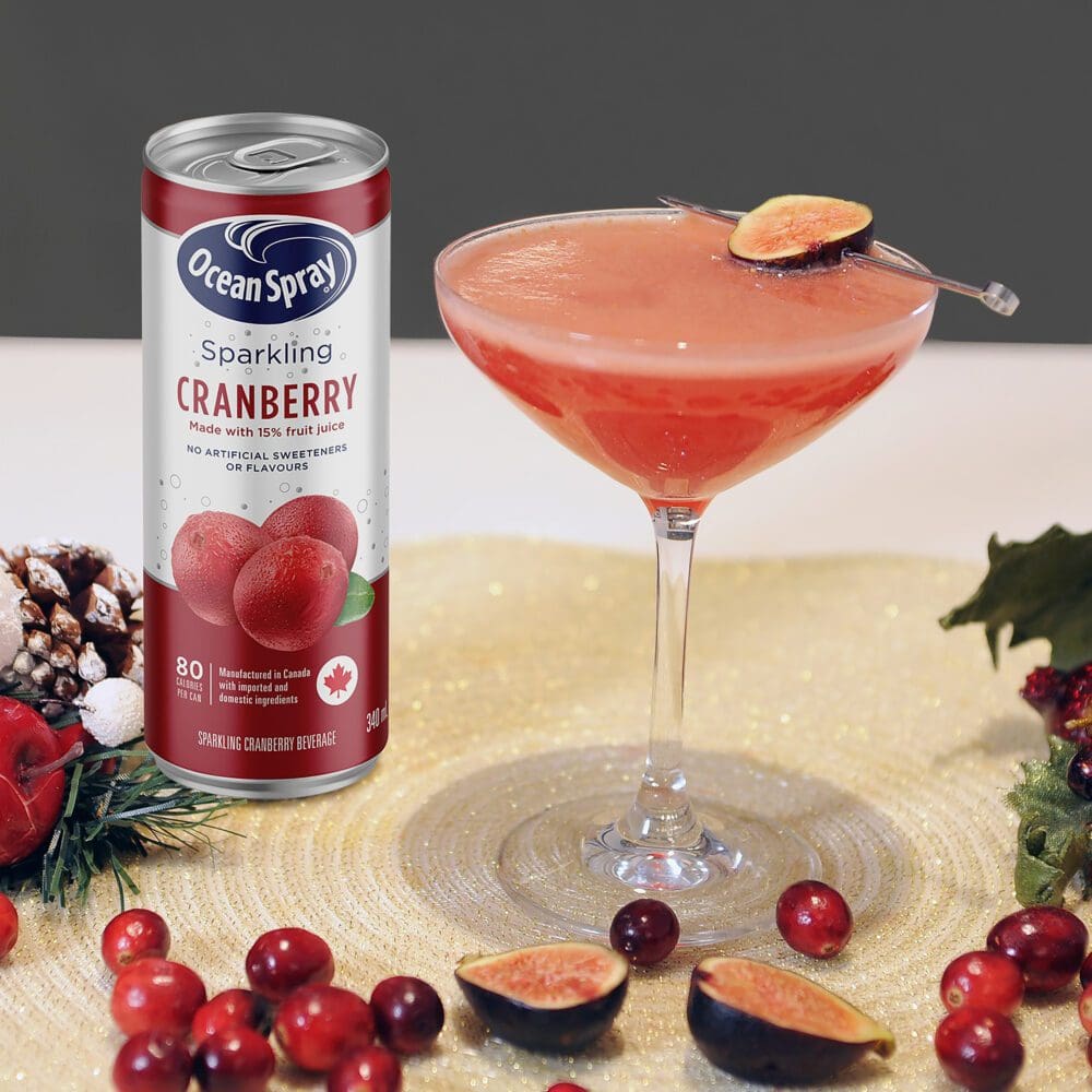Cue award-winning bartender Ashley Flynn of the Drake Hotel.  Ashley is sharing the top five cranberry cocktails and mocktails for the holidays inspired by the most festive, yuletide flavours. These five sparkling sips feature Ocean Spray Sparkling juice – because who else does cranberries better than Ocean Spray? And since they’re the only sparkling cranberry juice on the market, you know your drinks will all be originals!